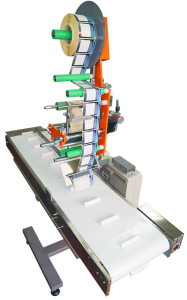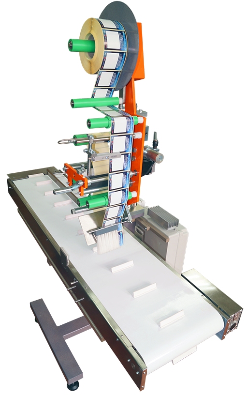 Automatic adhesive label gluers with a reachable gluing width of up to 150 mm. They are also manufactured according to the widths required by the client. Integrated unwinders for large rolls of adhesive labels, high speed, ensure maximum efficiency for convenient adhesive label application, i.e., convenient product marking and excellent traceability.