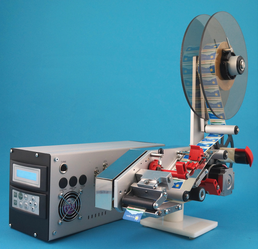 Pusiau automatinė lipnių etikečių klijavimo įranga skirta klijuoti etiketes ant cilindrinių objektų.