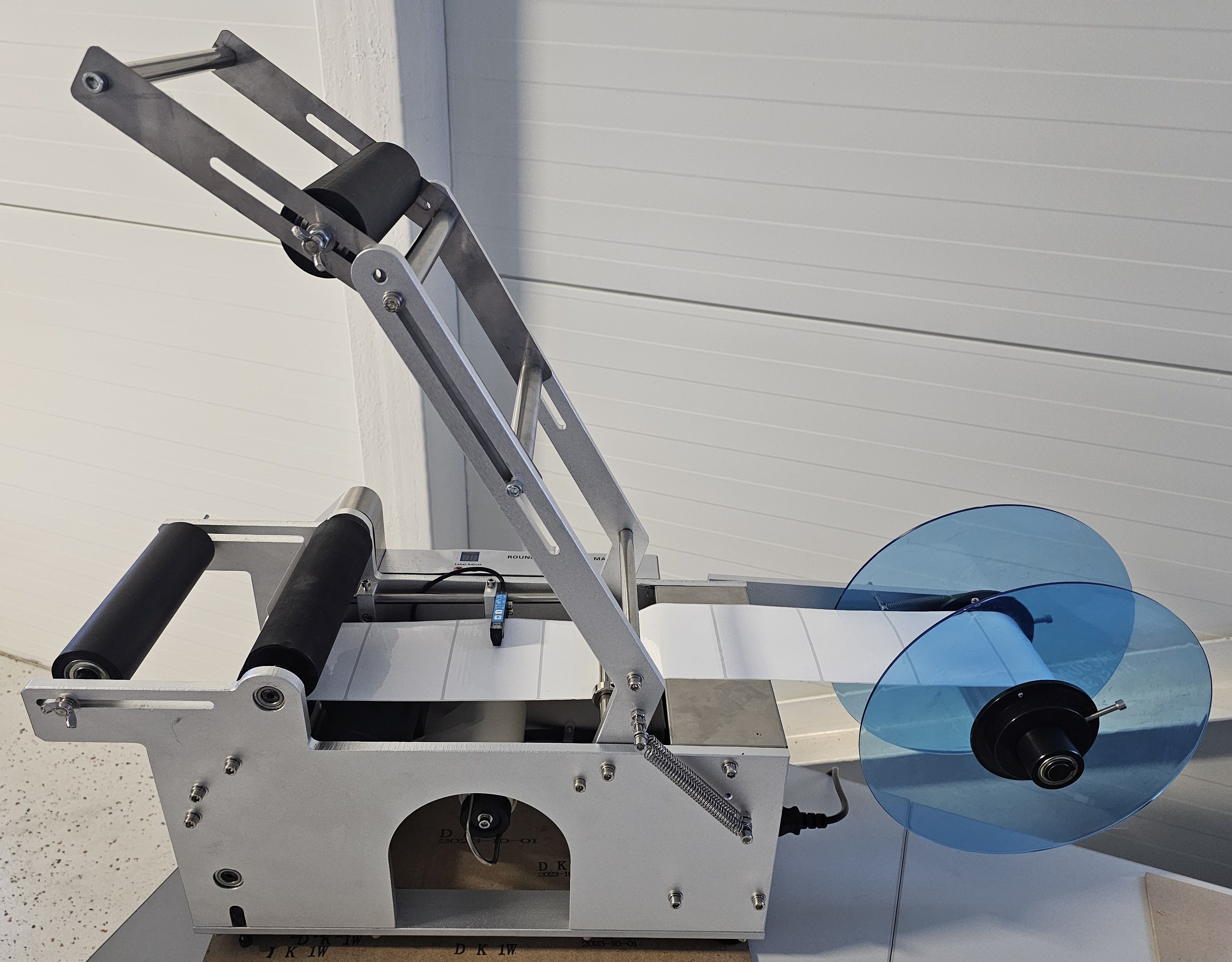Pusiau automatinė lipnių etikečių klijavimo įranga skirta klijuoti etiketes ant cilindrinių objektų.